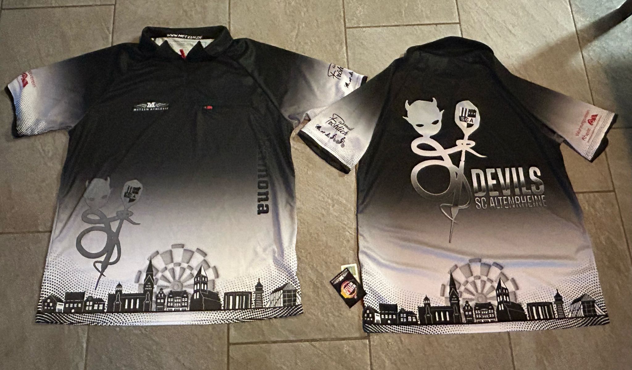 Nach einiger Wartezeit ist die neue Teambekleidung der Devils SC Altenrheine endlich fertig, sodass sie in dieser Woche geliefert werden konnte. Spätestens jetzt fühlt sich der Vereinswechsel vor einigen Monaten für unsere Mannschaft wirklich vollständig an. Neben unserem Schriftzug und dem jeweiligen Spielernamen ziert das Shirt die Skyline von Rheine und unser Teufelchen, welches das Vereinslogo auf seinem Flight trägt. So können die nächsten Spieltage definitiv kommen!