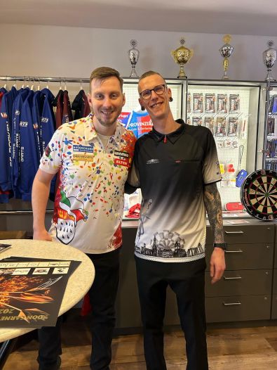 In der regionalen Szene war es das Event schlechthin am vergangenen Samstag und dabei waren auch unsere zwei Devils Jens ter Steege und Ramona Gunka. Beim Don Carne Darts Masters 2024 in Borken war neben 155 Teilnehmern nämlich auch kölsche Prominenz mit Florian Hempel anwesend. Das Tagesturnier selbst beendete unser Vereinsmitglied Jens sogar mit dem fünften Platz der Goldrunde. In der anschließenden Autogrammstunde gab es dann zur Unterschrift noch ein Beweis- und Erinnerungsfoto mit dem PDC-Profi für unser Vereinsheim.