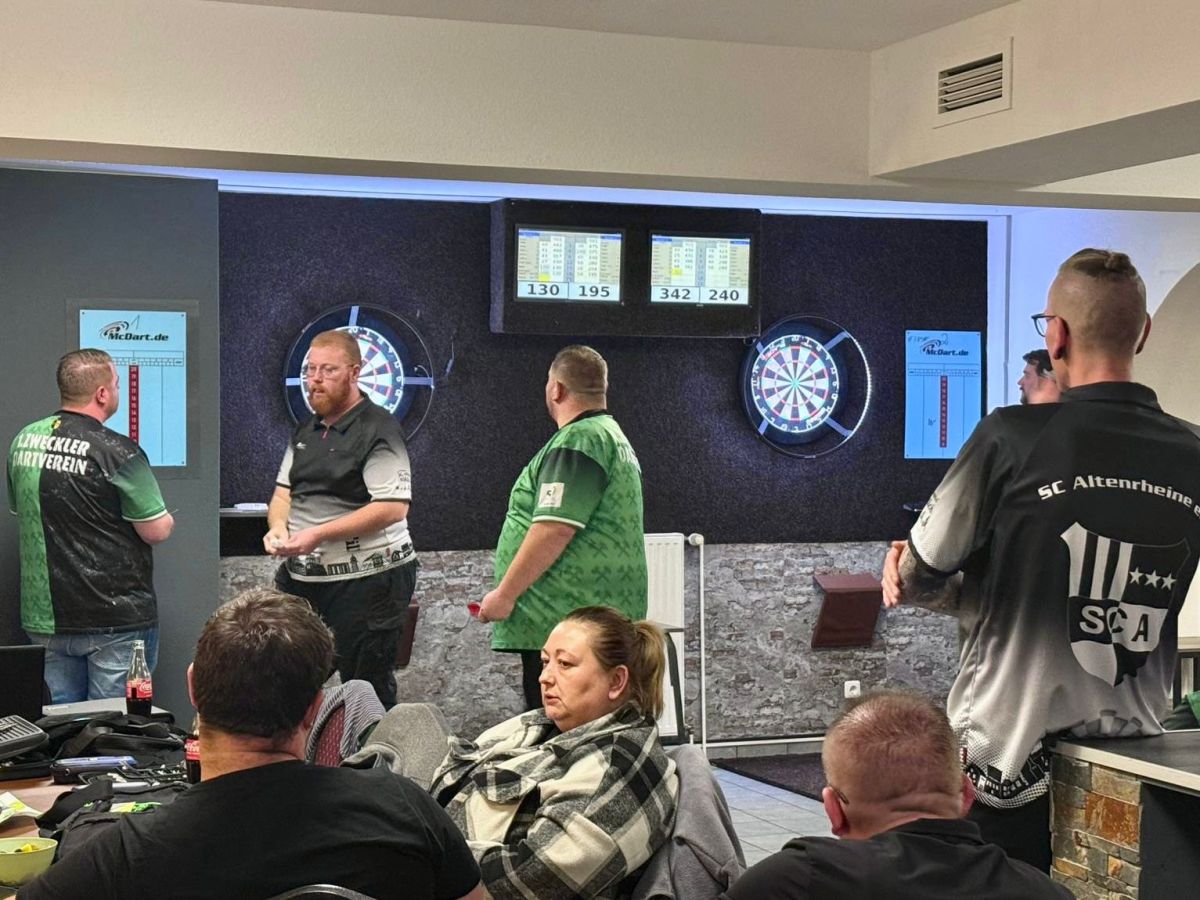 Das wohl wichtigste und gleichzeitig letzte Match der Hinrunde war auch von der bisher größten Spannung geprägt, denn beim zweiten Team des 1. Zweckler Dartvereins spielte die Altenrheiner NWDV-Vertretung nämlich gegen ihren direkten Konkurrenten. Vor diesem heiß erwarteten Spitzenspiel trennte uns übrigens nur ein Sieg Vorsprung von den unmittelbaren Verfolgern, sodass eine Rückfahrt aus Gladbeck ohne Punkte natürlich nie eine Option sein durfte.