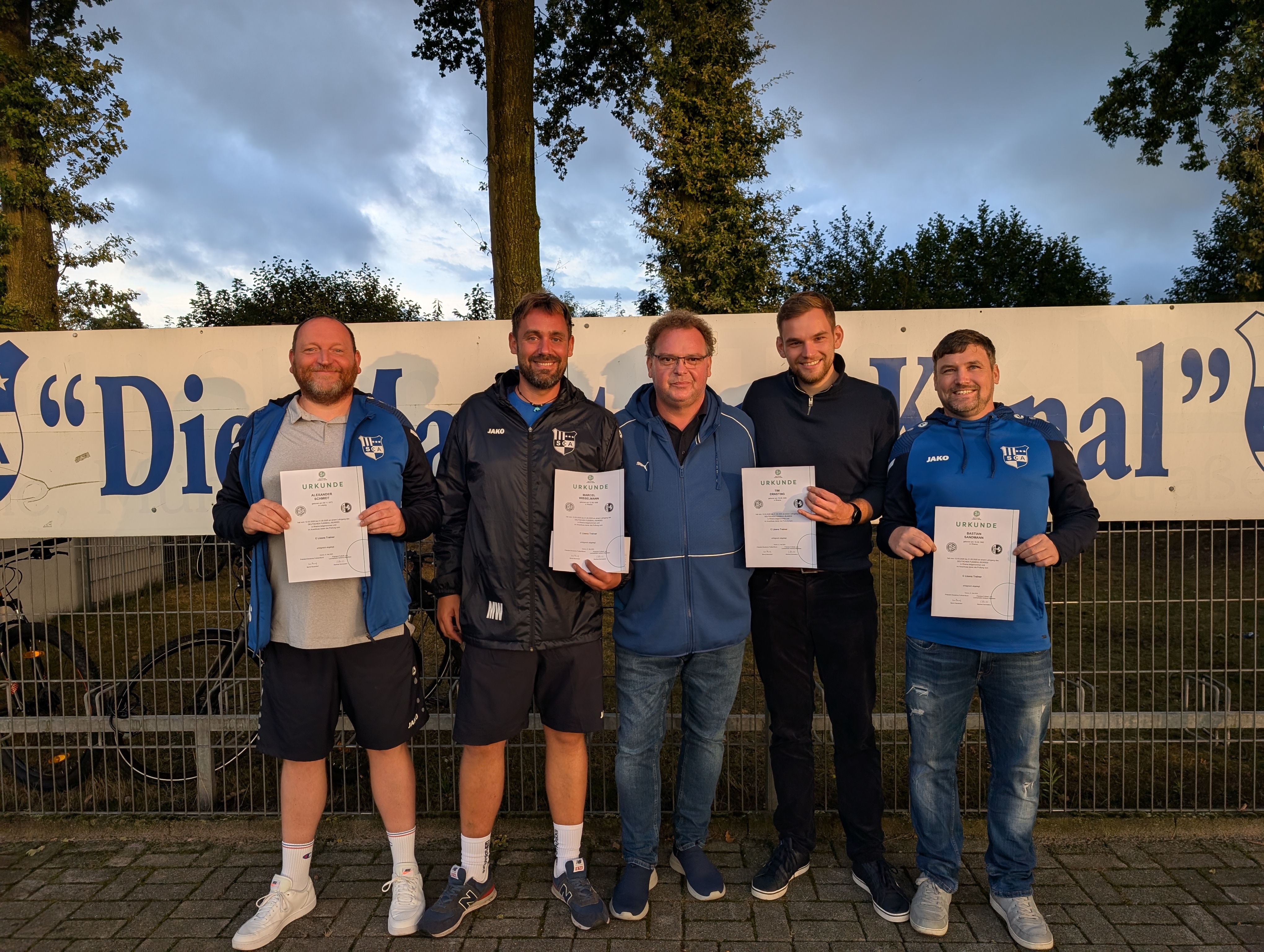 Große Freude beim SC Altenrheine: Alle sieben Teilnehmer des Vereins haben den diesjährigen Trainerlehrgang zur C-Lizenz erfolgreich abgeschlossen. Der Lehrgang, der vom 12. März bis zum 21. Mai 2025 stattfand, umfasste sowohl intensive Präsenzphasen als auch flexible Lerneinheiten – und endete mit einer erfolgreichen Prüfung am 21. Mai.
