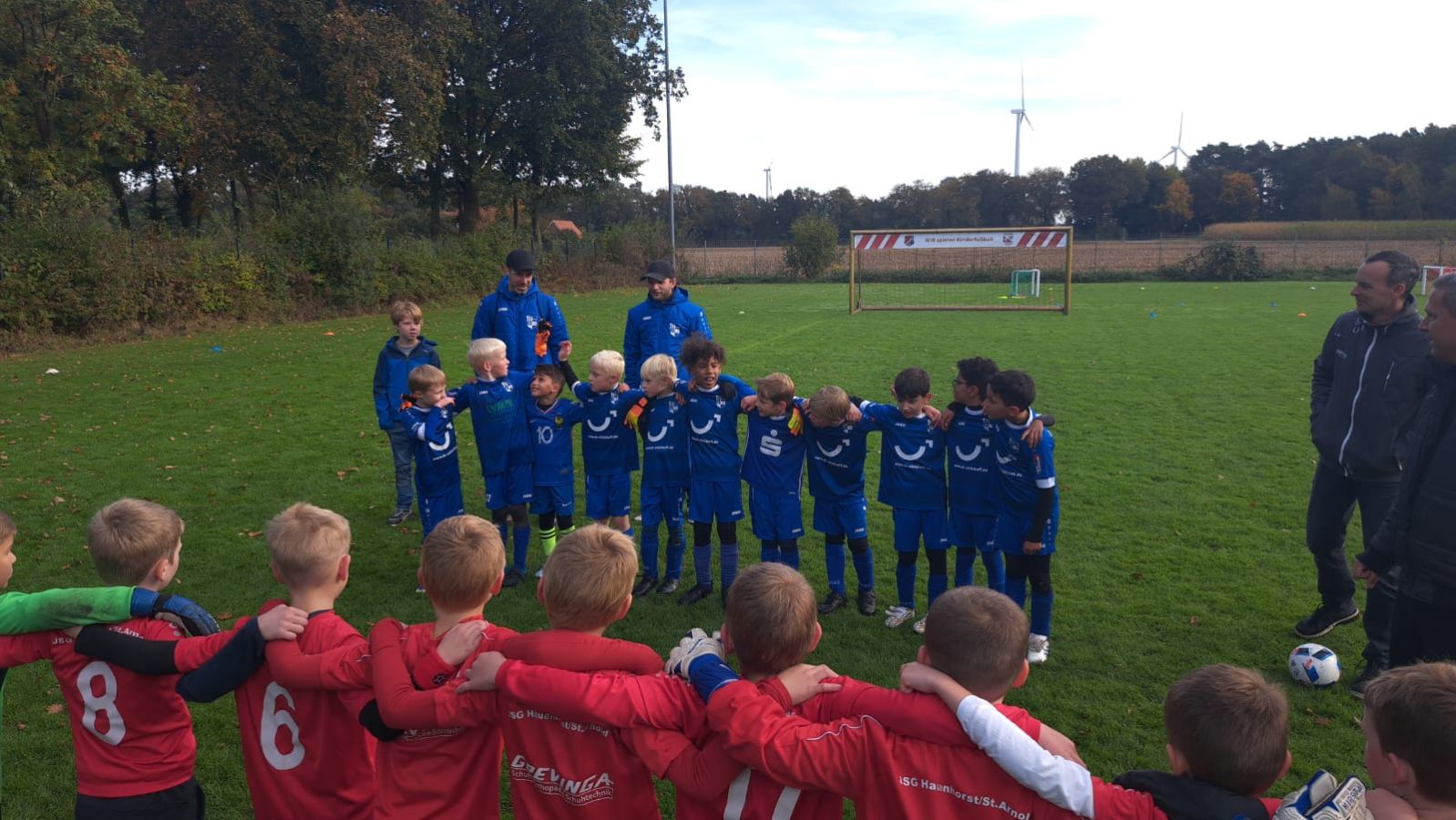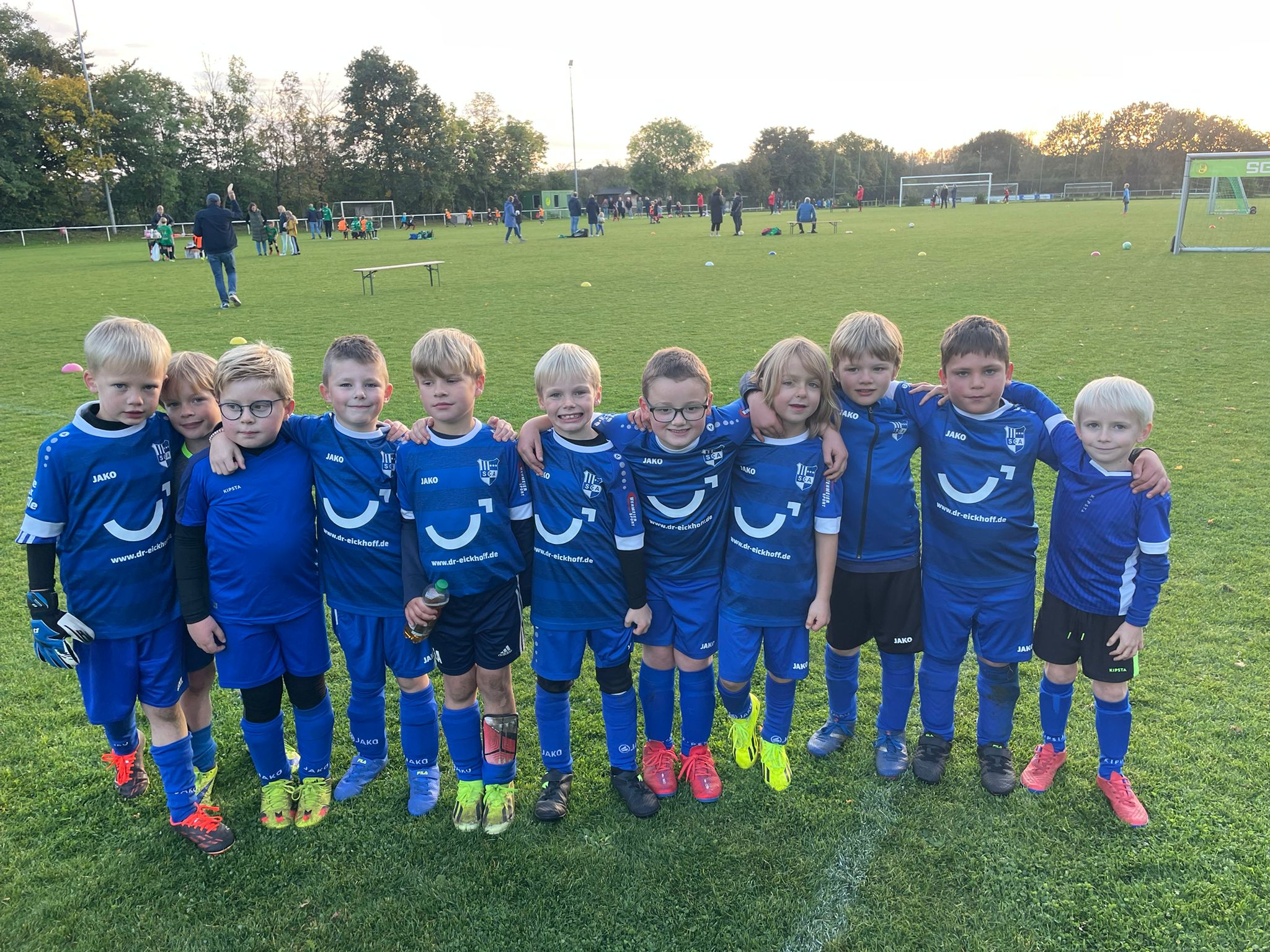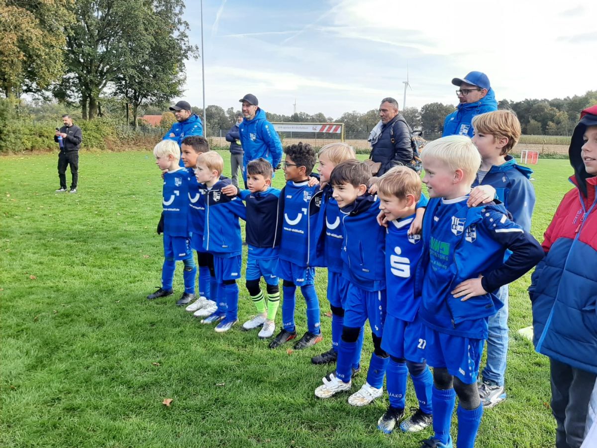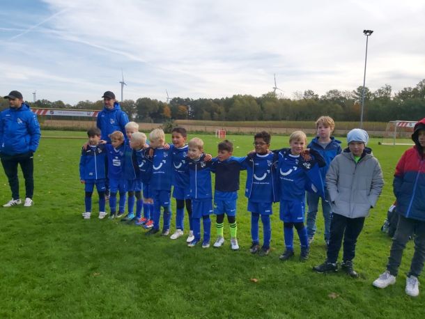 Mit neuem Fachwissen im Gepäck kam die F3 schließlich in St. Arnold an. Doch der Doppelspieltag für F3 und F4 stellte die Mannschaft mal wieder vor ein bekanntes Problem: 11 Spieler, aber nur 10 Trikots. Improvisation war gefragt, also mussten alte Trikots oder das private Paris Saint-Germain-Jersey herhalten, um einigermaßen einheitlich aufzulaufen. Aber es gibt gute Nachrichten! Dank der Unterstützung unseres Trikotsponsors wird die F3/F4 zukünftig 10 weitere Trikots, Hosen und Stutzen erhalten. Ein herzliches Dankeschön geht hiermit an das Fachzentrum für Kieferorthopädie – Dr. Eickhoff & Dr. Sternemann, das uns diese großzügige Unterstützung ermöglicht.