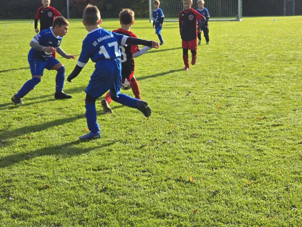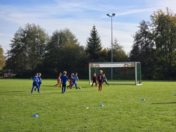 Nach der herzlichen Begrüßung zeigten die Kicker des SCA, dass sie die Leistungen der vergangenen Spiele erneut abrufen wollten – und das gelang ihnen! Mit blitzsauberer Bilanz wurden alle vier Spiele absolviert. Doch das eigentliche Highlight waren nicht die Ergebnisse, sondern die Fortschritte in den im Training besprochenen Spielsituationen. Die Passquote stieg, die Kommunikation bei der Ballforderung verbesserte sich deutlich, und das Defensivverhalten bei Ballverlust war an diesem Vormittag ebenfalls auf einem ganz neuen Niveau. Manche Beobachter mögen meinen, dass das Vermitteln solcher Details vielleicht zu viel für die jungen Spieler sein könnte, doch die Erfahrung zeigt: Kinder werden oft unterschätzt, wenn sie mit Spaß bei der Sache sind.