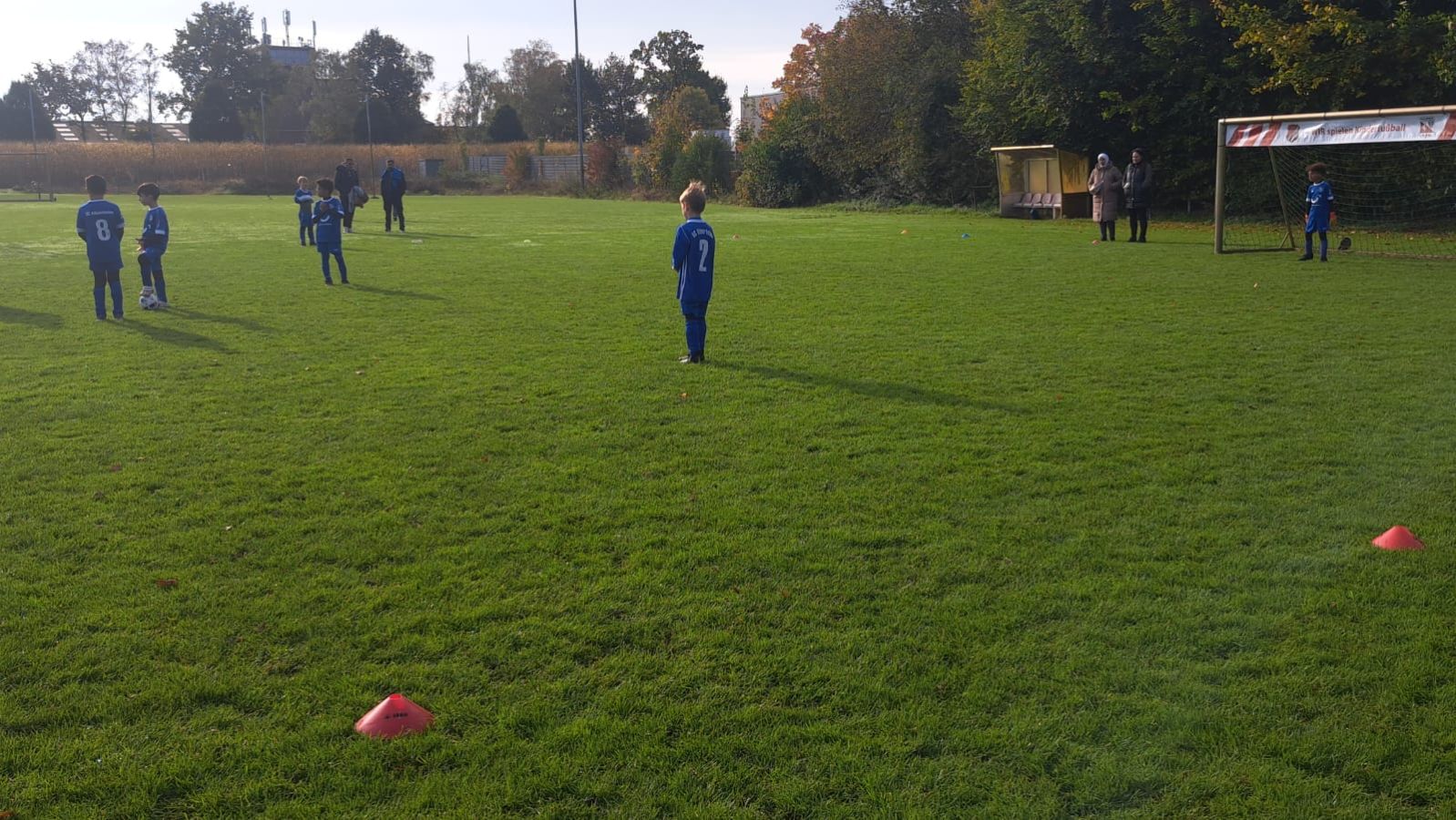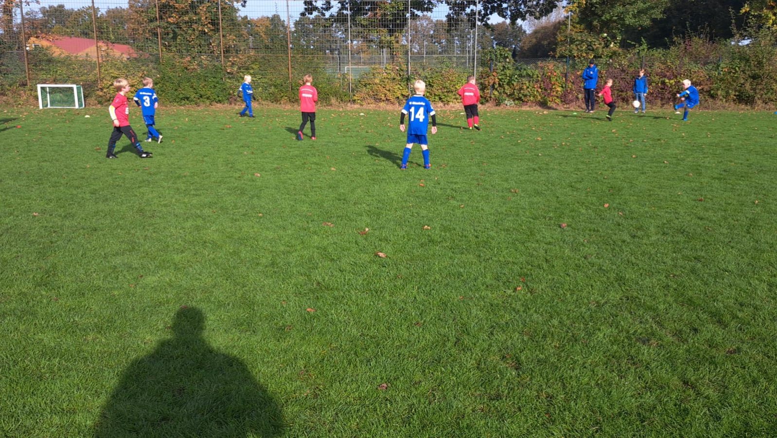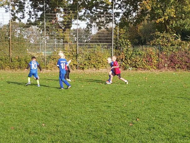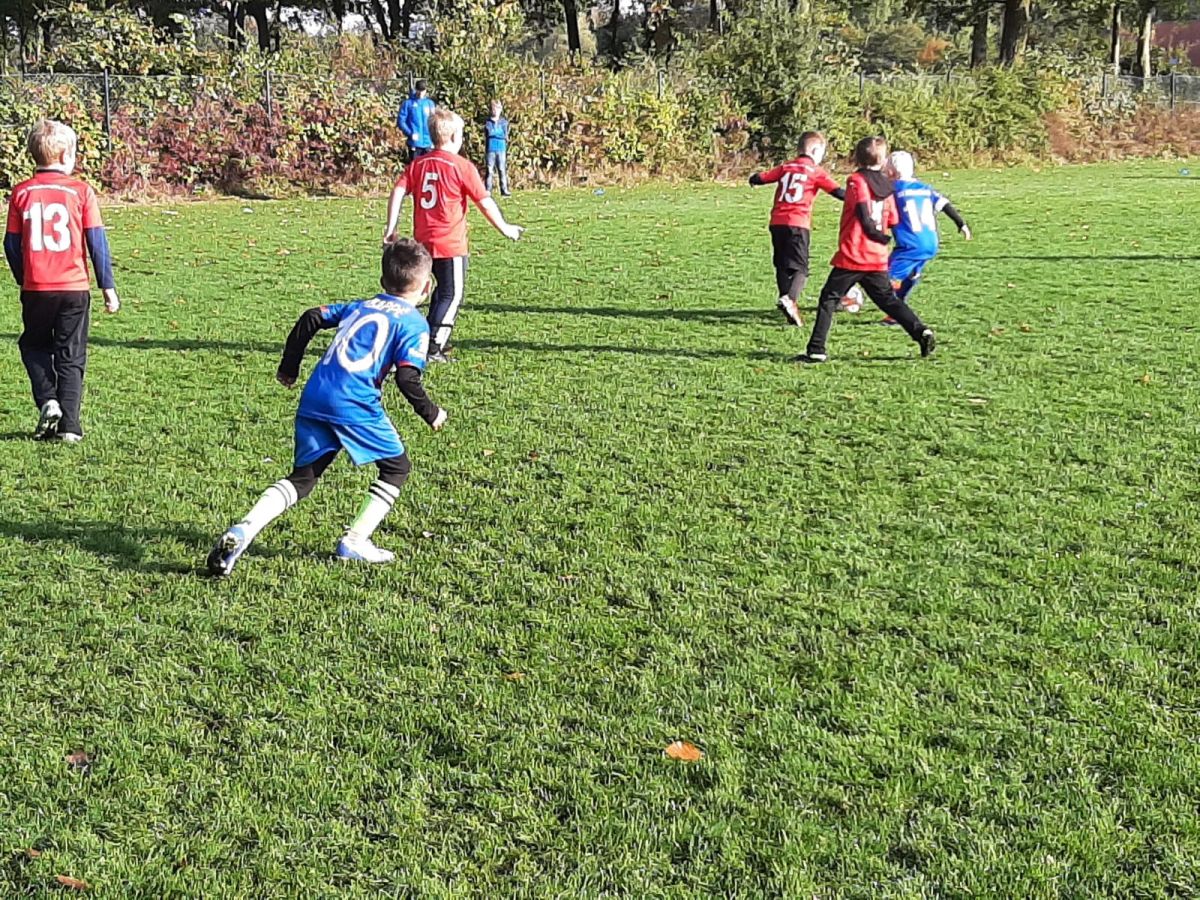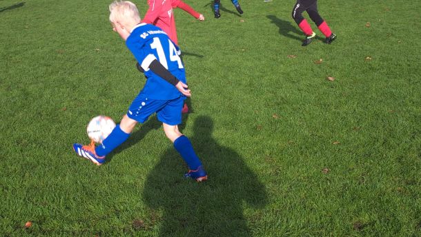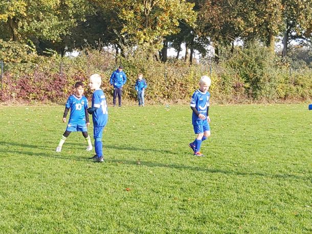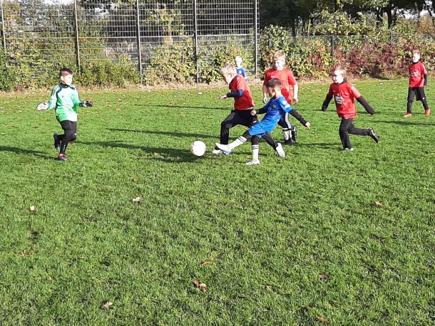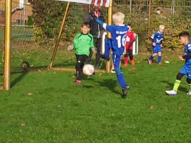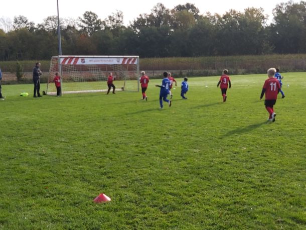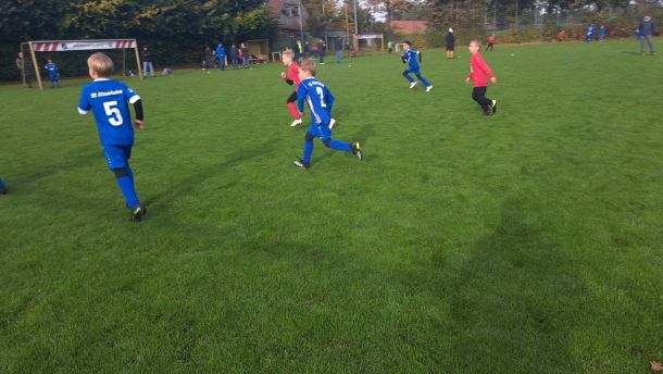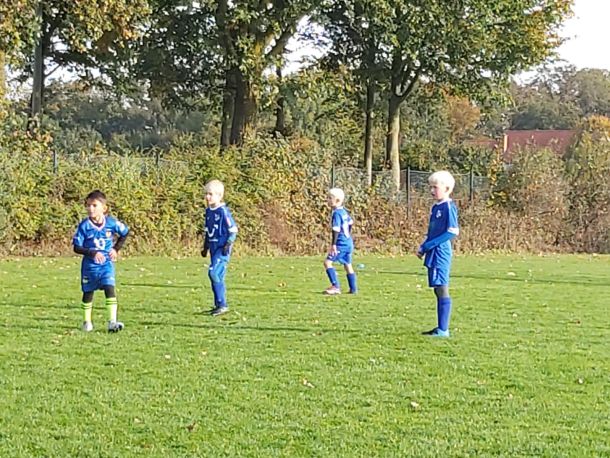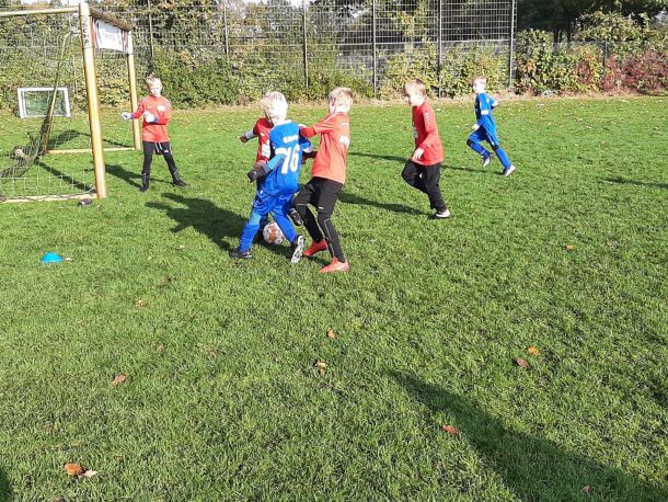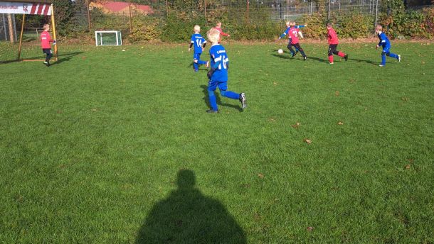 Mit voller Mannschaftsstärke trat die F4 beim FCE an. Dass die Trikots nach der Niederlage gegen die SG Elte wieder in tadellosem Zustand waren, sei nur am Rande erwähnt. Es war 09:30 Uhr, 8 Grad, und die Sonne schickte nur vereinzelte Strahlen durch die Wolken. Bei solchen Bedingungen wäre der Wechsel vom Fußballtrikot ins warme Bett durchaus eine Überlegung wert – jedoch nicht für unsere jungen Kicker.