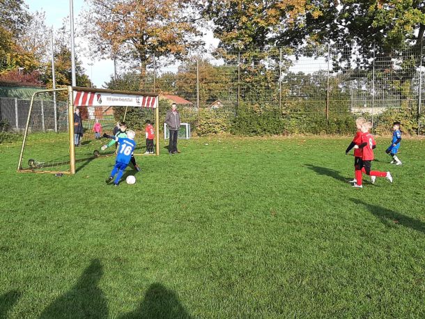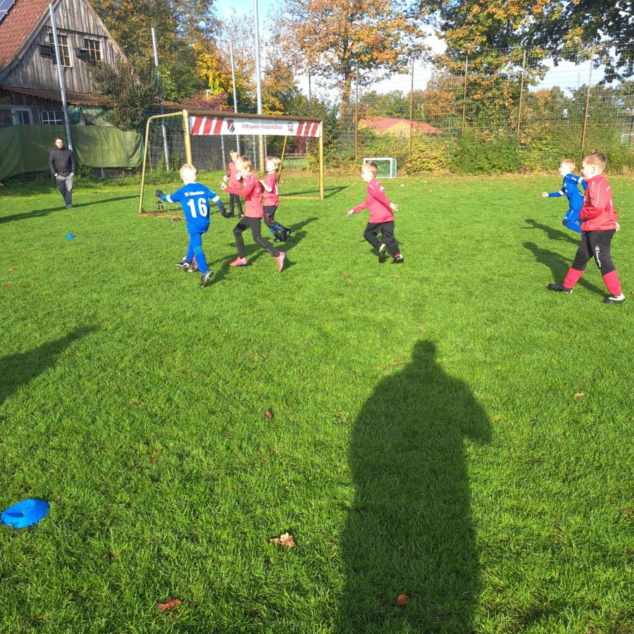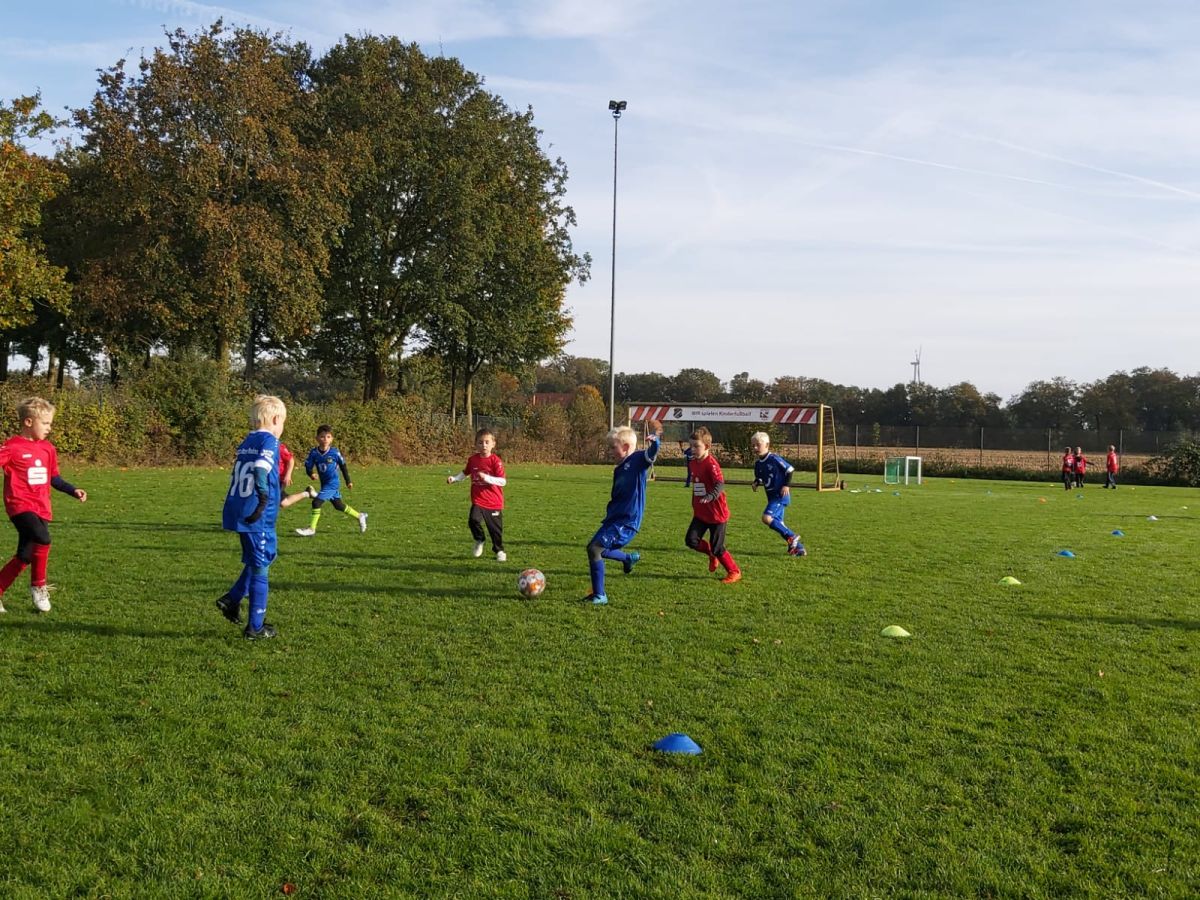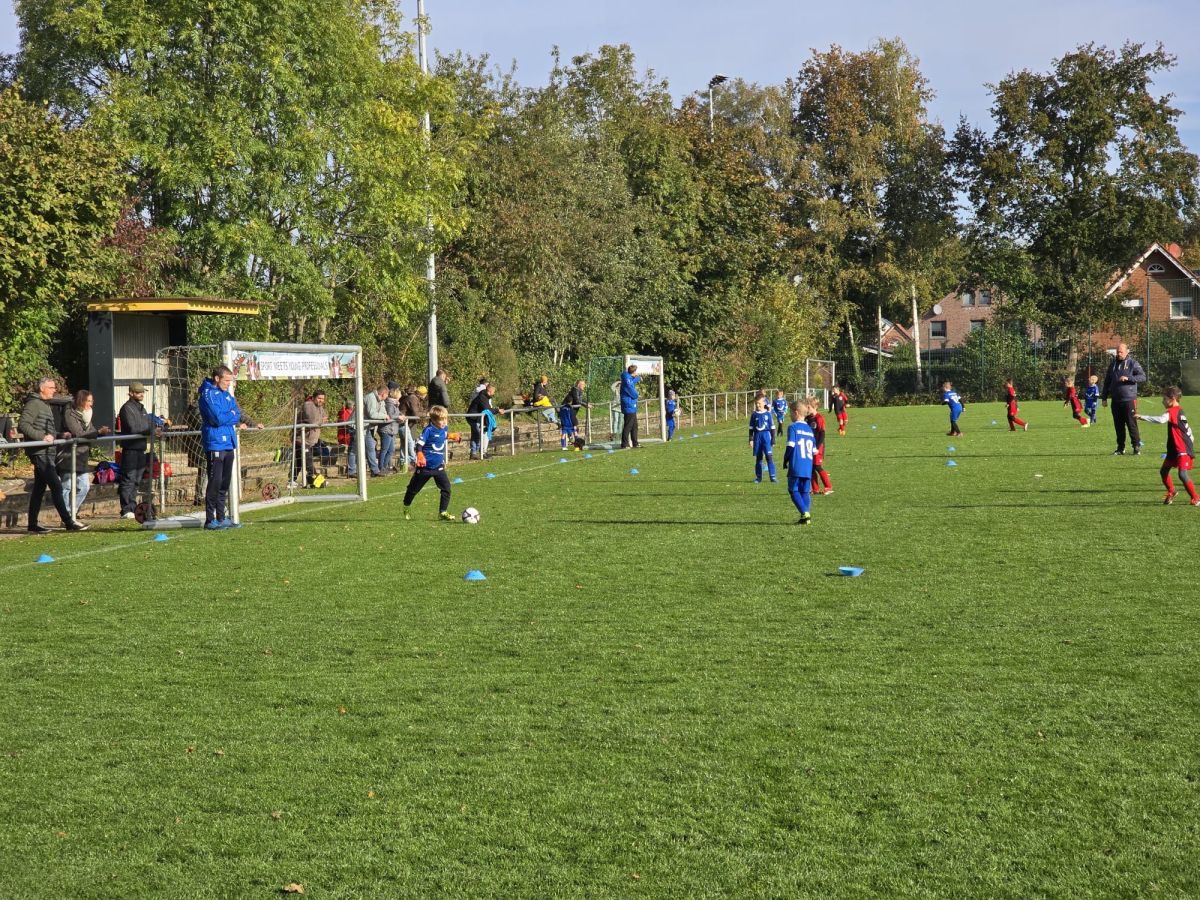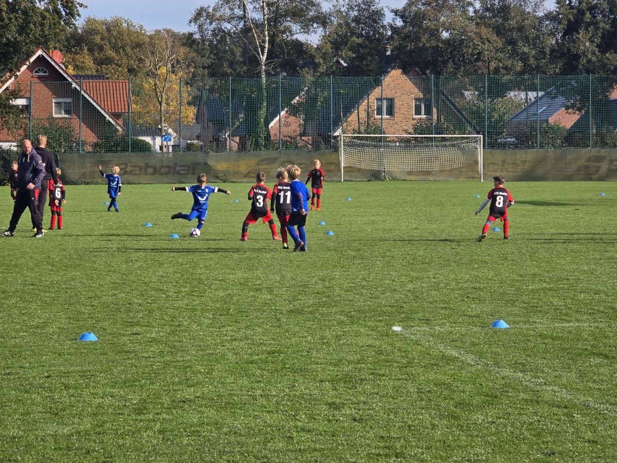 Diese Woche war besonders ereignisreich. Das ursprünglich für das vorletzte Wochenende angesetzte Spiel der F4 gegen Elte musste aufgrund einer Terminkollision auf den vergangenen Freitag verlegt werden. Doch nicht nur der Zeitpunkt änderte sich, sondern auch der Spielort, da der Sportpark Altenrheine bereits belegt war.