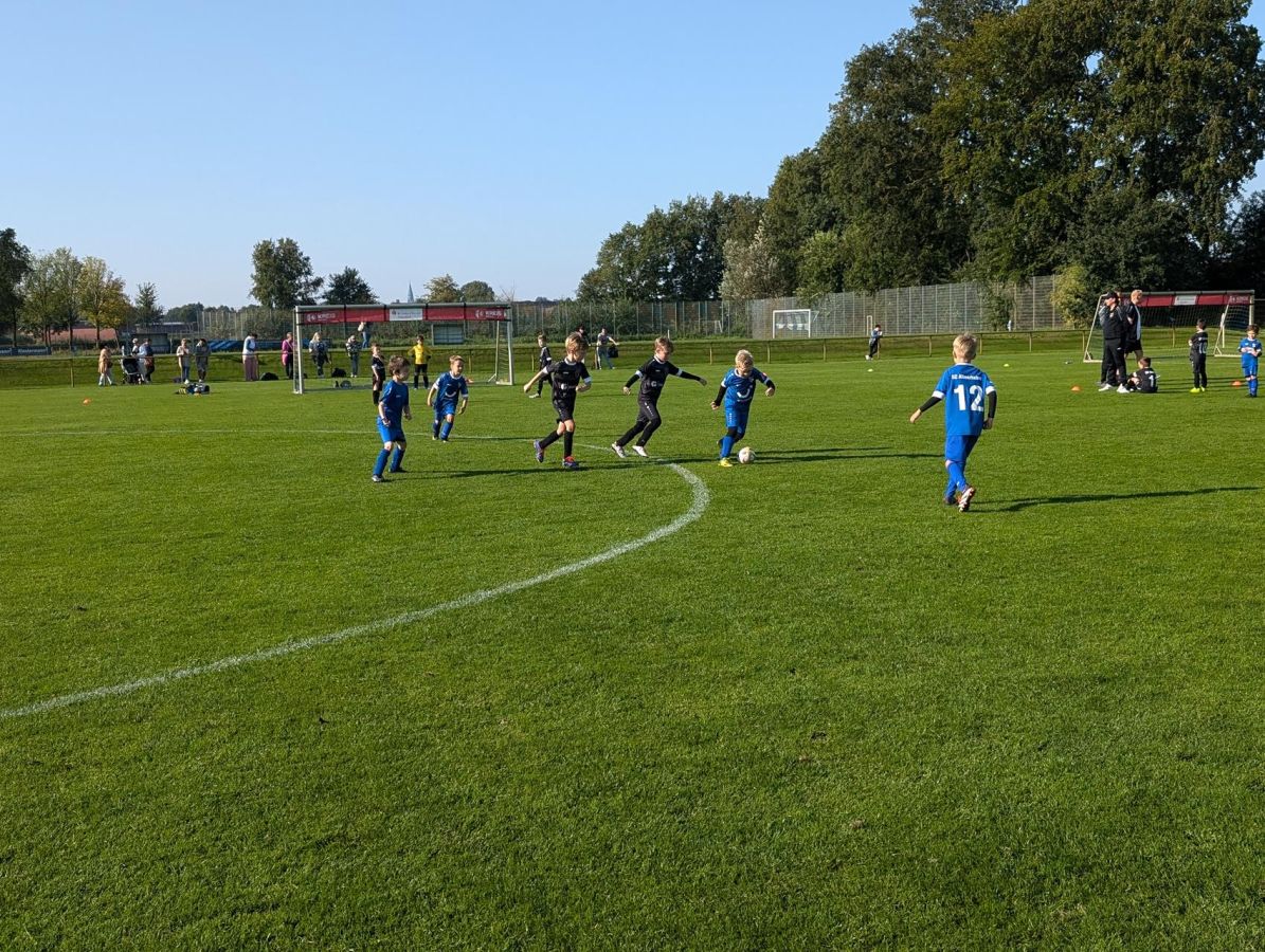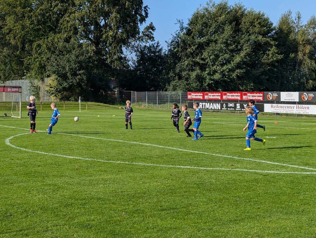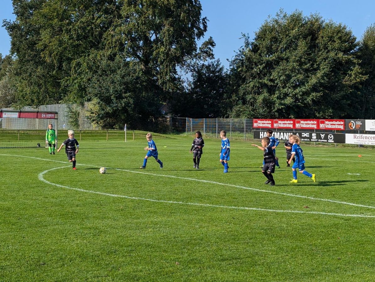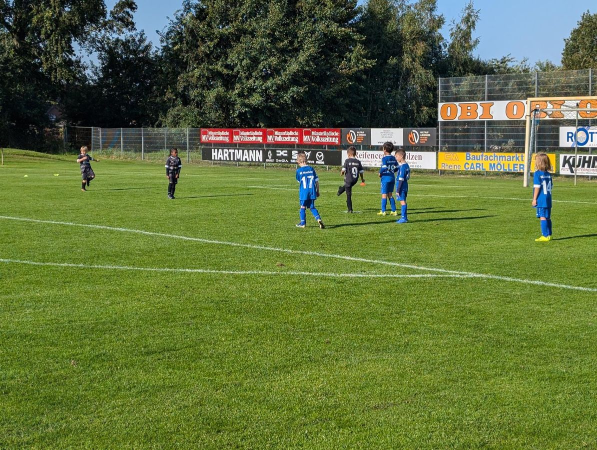Unsere F3 belegte ein Feld, da die Gäste aus Burgsteinfurt mit nur einem Team angereist waren. Die F4 besetzte die anderen beiden Felder, da der SV Mesum gleich mit zwei Mannschaften vertreten war. Da unsere F3 vollständig antrat und zwei Mannschaften stellen konnte, nutzen wir die Gelegenheit und führten parallel eine Trainingseinheit durch, um die Zeit optimal zu nutzen.