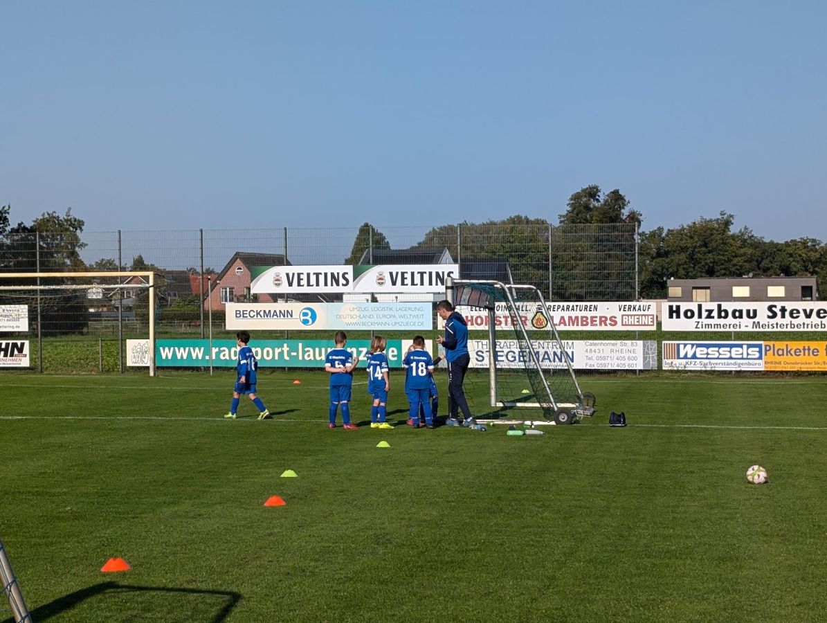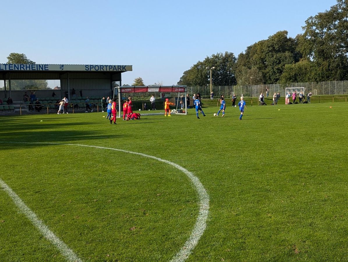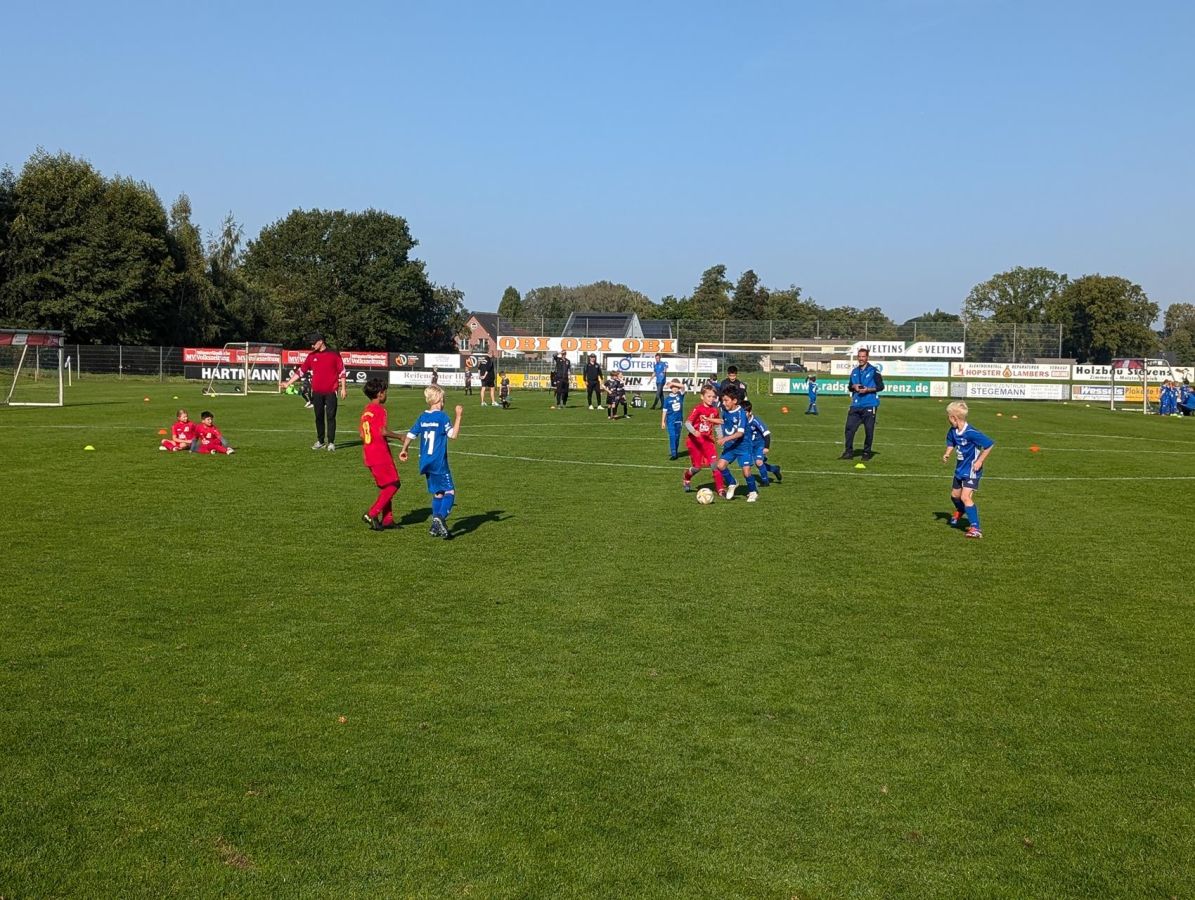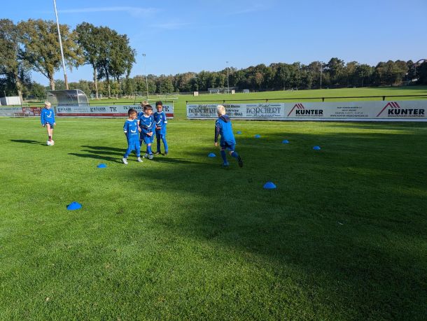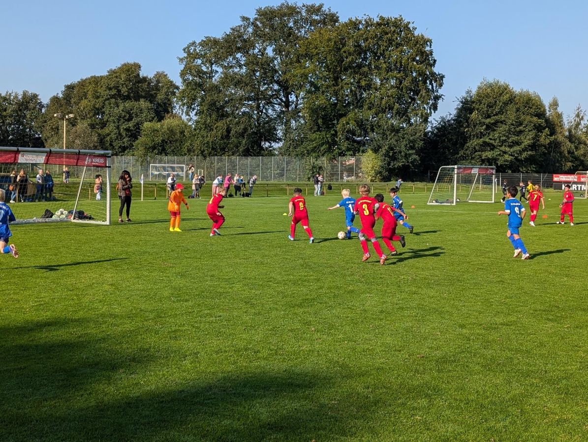 Unsere F3 belegte ein Feld, da die Gäste aus Burgsteinfurt mit nur einem Team angereist waren. Die F4 besetzte die anderen beiden Felder, da der SV Mesum gleich mit zwei Mannschaften vertreten war. Da unsere F3 vollständig antrat und zwei Mannschaften stellen konnte, nutzen wir die Gelegenheit und führten parallel eine Trainingseinheit durch, um die Zeit optimal zu nutzen.