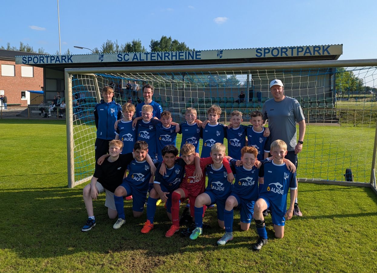Mit einem deutlichen 8:1-Erfolg gegen SW Weiner krönte die E1 des SC Altenrheine am gestrigen Mittwoch ihre beeindruckende Saison und sicherte sich hochverdient den dritten Platz in der Abschlusstabelle. Nach der Teilnahme in der "Champions League" beim Altenrheiner Pfingstturnier am Wochenende zuvor zeigten die jungen Kanalkicker auch im letzten Punktspiel noch einmal ihr ganzes Können.