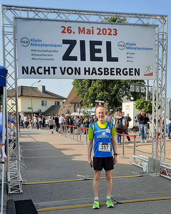 Am vergangenen Freitag startete Heinz Jürgen Bertram von der Laufabteilung des SC Altenrheine bei der 42. Nacht von Hasbergen. Die Laufstrecke waren zwei Runden über 2,5 km mit einigen leichten und kurzen Steigungen und führte durch den Ortskern von Hasbergen. Heinz Jürgen Bertram startete bei wolkenlosen Himmel über die 5 km Distanz. Auf dieser Strecke gingen weitere 110 Athletinnen und Athleten an den Start. Nach 21:55 Min.stoppte für Heinz Jürgen Bertram die Zeitmessung. Das war der erste Platz in der AK 60 und der 16. Rang in der Gesamtliste.
