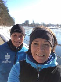 Petra Romberg absolvierte am letzten Sonntag mit flotten Kufen auf dem zugefrorenen Hengemühlensee einen 10-Kilometer-Lauf und dokumentierte ihre Schleifen und ihre durchschnittliche Kilometerzeit von 4:38 Minuten mittels Laufuhr für die große SCA-Whats-App-Gruppe. Claudia Stockmann, Emsstern Rheine, war in der letzten Woche im Raum Bentlage, Salzbergen, Holsten 50 Kilometer joggend unterwegs. Daneben legte sie in diesem Gebiet aber auch noch 60 Kilometer auf Langlaufskiern im Tiefschnee zurück.