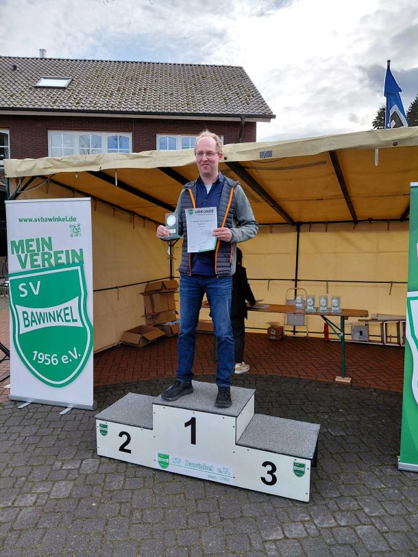 Die Altenrheiner Laufabteilung war am Samstag beim Osterlauf in Bawinkel mit zwei Läufern am Start. Beide erreichten Altersklassensiege. Oliver Dobrzinski startete beim 5-km-Lauf im Rekord-Teilnehmerfeld von 283 Athleten. Er hatte sich eine Zeit von 20 Minuten zum Ziel gesetzt und hielt das Tempo von 15 km/h bis zum Ziel durch. Mit der Zeit von 19:40 Minuten siegte er in der Altersklasse M 45 und ließ dort 12 Athleten hinter sich.