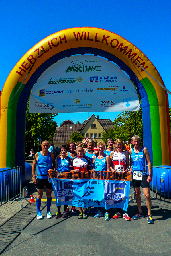 Mit einem Team von 6 Ausdauersportlern ist die Ausdauersportabteilung des SC Altenrheine bei den Riesenbecker SixDays vertreten. Die überregional bekannte Laufveranstaltung führt die Läuferinnen und Läufer seit dem vergangenen Samstag an sechs aufeinanderfolgenden Wettkampftagen über eine Strecke von 140 Kilometern, die zusätzlich mit etlichen Höhenmetern gespickt ist. Start und Ziel ist Riesenbeck. Nach den ersten zwei Tagesetappen sind die Altenrheiner Ausdauersportler mit den Zwischenergebnissen bestens zufrieden. Angesichts der Temperaturen gilt es sich die Kräfte gut einzuteilen und die kurzen Regenerationsphasen zu nutzen. Am kommenden Donnerstag (Christi Himmelfahrt) werden die Sportler den von zahlreichen Zuschauern gesäumten Zieleinlauf in Riesenbeck genießen können.