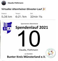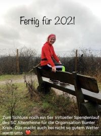 Das Coronavirus nimmt auch auf Traditionen keine Rücksicht. So fiel auch die geplante 34. Auflage des Altenrheiner Silvesterlaufs den steigenden Infektionszahlen zum Opfer. Aber immerhin 102 Teilnehmerinnen und Teilnehmer meldeten sich für einen spontan Anfang Dezember aus der Taufe gehobenen virtuellen „Spendenlauf“ an. Neben der sportlichen Bewegung – auswählen konnten die Hobbyläufer zwischen den Distanzen fünf und zehn Kilometern, die im Zeitraum vom 15. bis zum 31. Dezember absolviert und gemeldet wurden – kam die Aktion auch einem guten Zweck zugute.