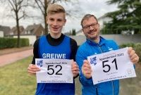 Mit Blick auf die jetzige Starterliste kam er im Vergleich mit früheren Ergebnislisten einem schönen Zufall auf die Spur. „Mit Simon Wagemaker aus Salzbergen und Thomas Otting aus Emsbüren hatten sich die beiden Sieger von 2016 angemeldet und gespendet. Während Wagemaker, der vor fünf Jahren den Zehn-Kilometer-Wettbewerb in ausgezeichneten 34:52 Minuten gewonnen hatte, sein Ergebnis offen ließ, lieferte Otting ein zählbares Resultat ab: In 39:31 Minuten belegte er in der Zehn-Kilometer-Wertung des Jahres 2021 den zweiten Platz. 2016 hatte er die Hälfte der Distanz in 17:01 Minuten absolviert und damit über fünf Kilometer gewonnen.