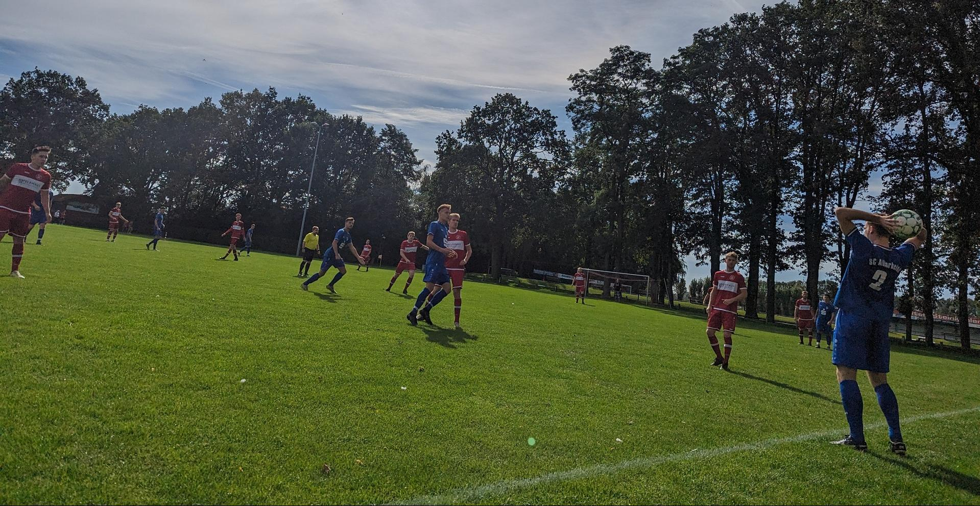 Doch lassen Sie uns von vorne beginnen: Schon in der 3. Minute setzte Tim Schmidt ein deutliches Zeichen, als er aus 25 Metern Entfernung einen mächtigen Schuss abfeuerte, der nur knapp das Ziel verfehlte, indem er an die Latte klatschte. Das Mittelfeld sah viele intensive Zweikämpfe, und das Spiel gestaltete sich offen. Die Altenrheiner hatten alle Hände voll zu tun, um bis zur 39. Minute sechs Eckbälle gegen sich abzuwehren, und genau in dieser 39. Minute fiel das entscheidende Tor. Borussia trat einen Eckstoß von der linken Seite, den die Altenrheiner erfolgreich verteidigten. Doch der resultierende Flankenball wurde von einem Spieler von Borussia zum zweiten Pfosten geköpft, wo ein weiterer Borussia-Spieler bereitstand. Trotz vehementer Proteste der Altenrheiner über die klare Abseitsposition blieb der Schiedsrichter aus Mesum unbeeindruckt.