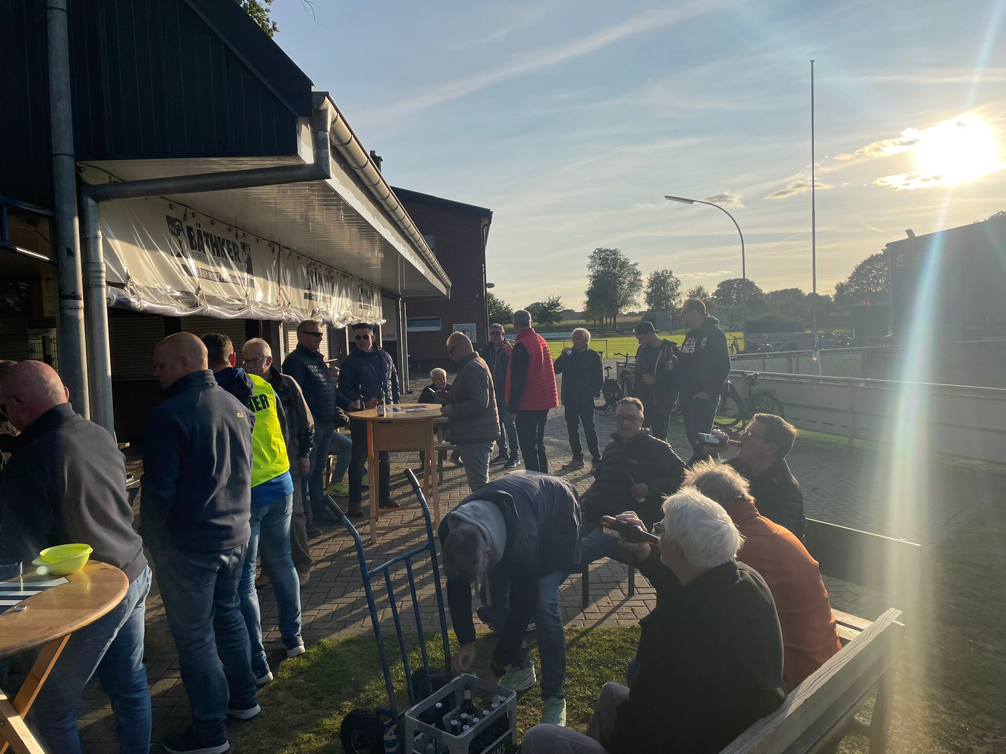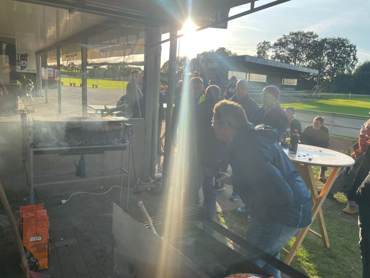 Nach dem Aufenthalt bei Jürgen machte sich die Gruppe wieder auf den Rückweg. Bei strahlendem Sonnenschein kehrten die Radfahrer schließlich zum Sportplatz des SC Altenrheine zurück, wo bereits alles für ein gemütliches Beisammensein vorbereitet war. Traditionell wurde der „Kotelettstrang“ vom Grill serviert, der bei allen Teilnehmern großen Anklang fand.