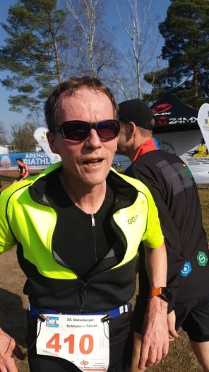 Schon die ersten 5,5 Laufkilometer hatten es in sich. Für einen Cross-Duathlon typisch ging es über Stock und Stein. Doch die Waldwege waren nicht nur teilweise mit Schnee bedeckt, sondern auch stark aufgeweicht. Das fordert viel Kraft beim Laufen. Nach 26:21 Minuten wechselte der SCler auf das Mountainbike. Der Veranstalter aus Sachsen-Anhalt pries seinen Cross-Duathlon als Schlammschlacht an und blieb seinem Versprechen treu. Die 25 Radkilometer waren zu einem so frühen Saisonzeitpunkt sehr anspruchsvoll. Das dokumentieren auch die 450 Höhenmeter des Streckenplans. Doch Dierks hielt sich immer in den Top-Twenty der Gesamtliste auf. Auch die abschließenden 5,5 Kilometer zu Fuß absolvierte er souverän. Nach 2:17:23 Stunden lief er als 14. der Gesamtwertung und 3. in der AK 55 ins Ziel.