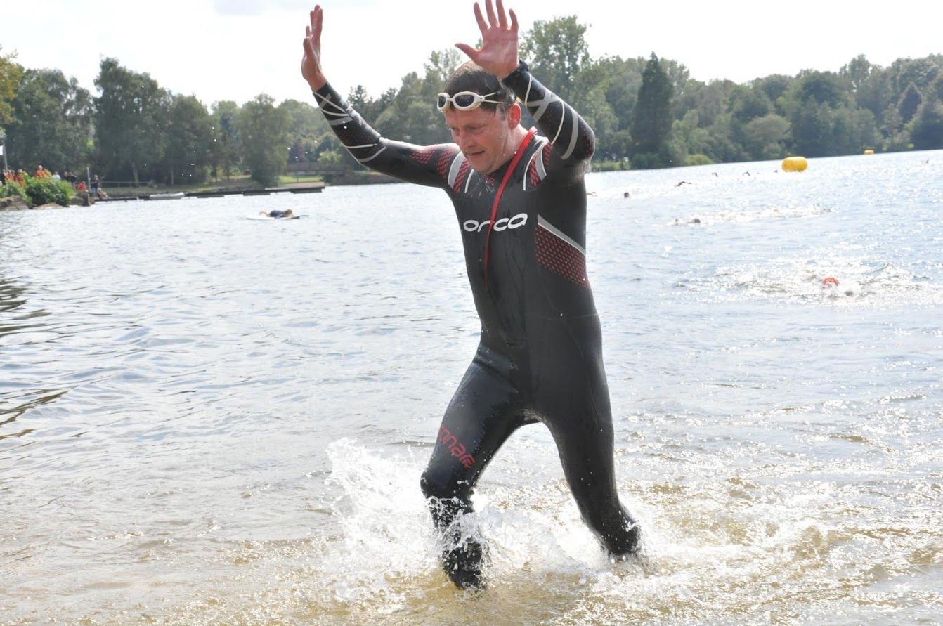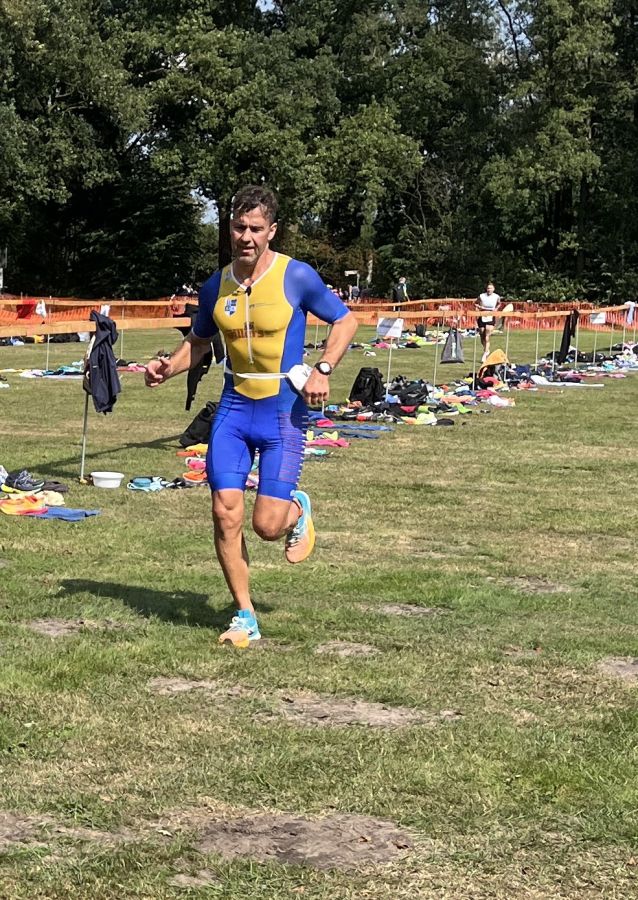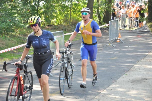 Um zwölf Uhr stürzte sich Christian Dudek mit den Athleten der olympischen Distanz in den Torfmoorsee und schwamm 1500 Meter. Nach 26 Minuten hatte er wieder festen Boden unter den Füßen und lief mit seinem Triathlonrad Richtung Radstrecke. Die kurze und winkelige Radrunde verlangte mit etlichen Kurven, schmalen Straßen und kleinen Anstiegen Konzentration vom ersten bis zum vierzigsten Kilometer. Die Konzentration hatte der SCler und stellte sein Rad nach 1:02 Stunden im Wechselbereich wieder ab. Für die vier Laufrunden, die sich zu zehn Kilometer summierten, benötigte Dudek nur 42:57 Minuten. Mit der Endzeit von 2:14:02 Stunden belegte Christian Dudek einen sehr guten zweiten Platz in der AK 55 und Platz zehn in der Gesamtwertung.