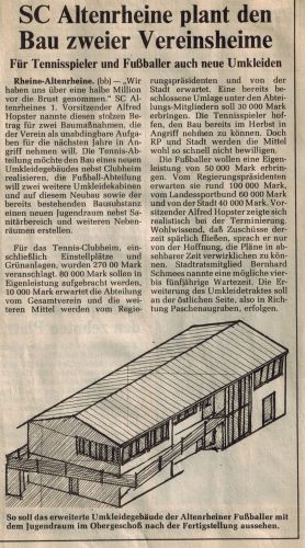 Gebäudeplanung: Erweiterung des Kabinentraktes um 2 Kabinen mit Nasszelle und die Schaffung eines Jugendraumes mit den erforderlichen Nebenräumen durch Aufstockung des bisherigen Kabinengebäudes.