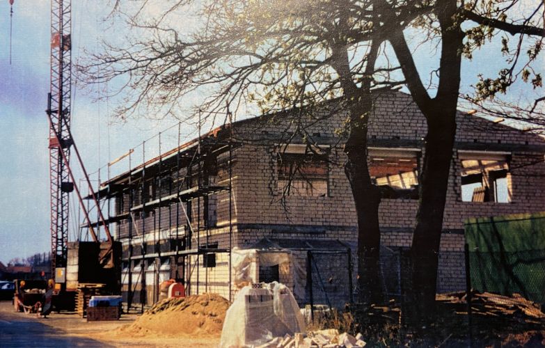 1991: Fertigstellung des Rohbaues einschließlich Dacheindeckung.