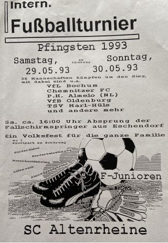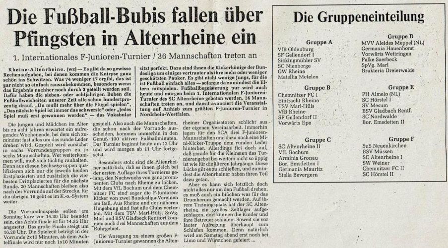 Viele namhafte Mannschaften nehmen teil: Borussia Dortmund, Bayer Leverkusen, VfL Bochum, FC Chemnitz, TSV Marl-Hüls, PH Almelo (Holland)