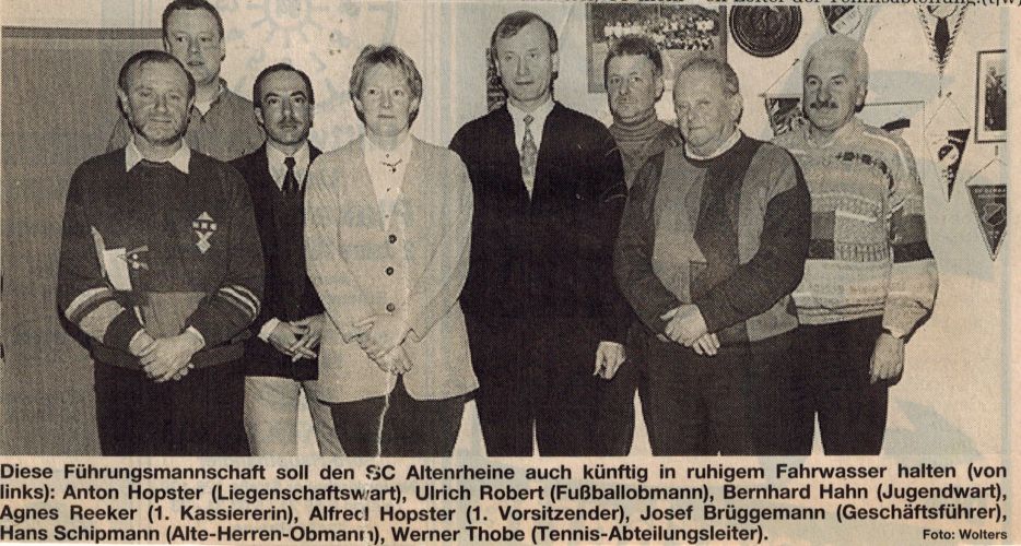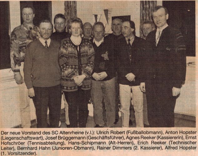 Alte Herren - Stadtmeister 1995 - hinten v.l.: Hans Schipmann, Wilfried Münning, Thomas Mersch, Thomas Brüning, Uwe Garnings, Klaus Schräder, Uwe Vollrath, Dirk Schuknecht, Jochen Stevens, Trainer Clemens Mersch - vorne v.l.: Betreuer Wolfgang Schmidt, Ludger Göcking, Adalbert Wersching, Norbert Schöpker, Holger Marx, Ralf Kippelt, Rainer Nähring, Axel Blömers, Dieter Witt