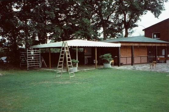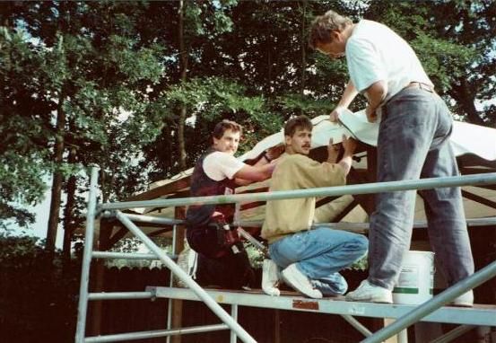 Bau eines Zeltdaches am Pavillon.