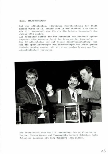 Bei der Sportlerehrung der Stadt Rheine wird unsere 3. Mannschaft als fairste Mannschaft des Jahres 1994 geehrt.