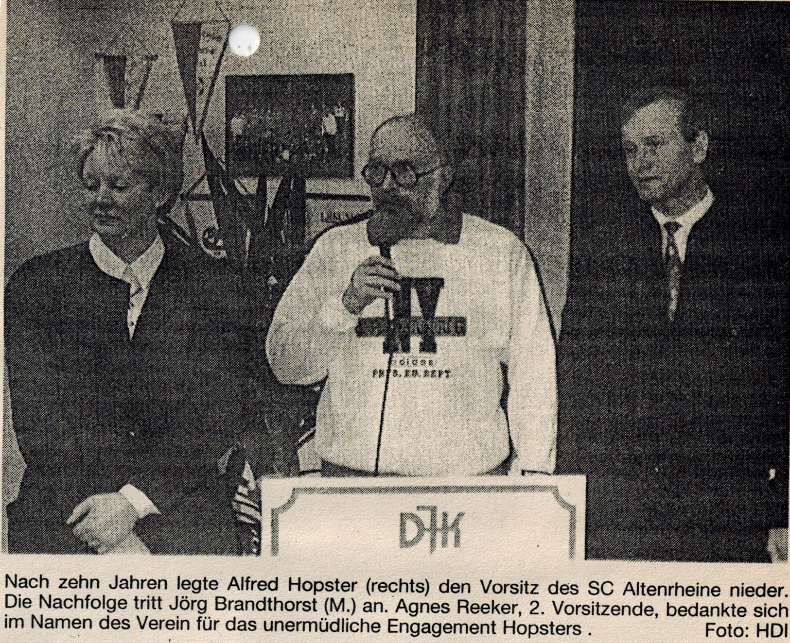 Alfred Hopster tritt als 1. Vorsitzender zurück. Sein Nachfolger wird Jörg Brandhorst.