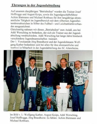 Für langjährige ehrenamtliche Tätigkeit in der Jugendabteilung werden mit dem