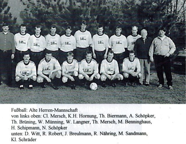 1. Mannschaften - hinten v.l.: Betreuer Ludger Göcking, Andreas Brink, Stefan Benninghaus, Ralf Lübke, Marco Holthoff, Raphael Cardelli, Markus Langner, Klaus Jürgens, Trainer Jürgen Westhoff - vorne v.l.: Marco Kolembar, Ralf Maaßen, Holger Kaup, Dirk Vogt, Guido Stevens, Raimund Terbeck, Uwe Peters