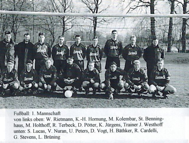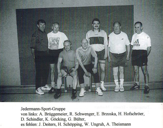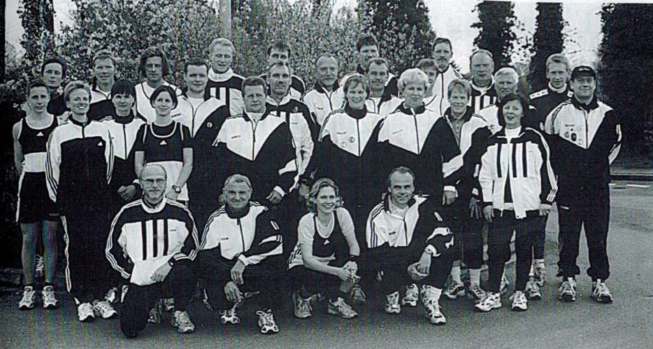 Laufabteilung - hinten v.l.: Andrezj Sierocki, Thomas Veltmann, Marc Field, Olaf Schmidt, Klaus Lüttmann, Hubert Vogel, Alfred Naberbäumer, Bernhard Schmees, Guido Brüggemeier - mitte v.l.: Henrik Kösters, Aloysia Wegmann, Thomas Wortmann, Werner Niehues, Ralf Griegel, Frank Hacker, Theo Wilmes, Gustav Vogelsang, Ingmar Bednorz - vorne v.l.: Susanne Veltmann, Bernadette Kösters, Jürgen Schmitz, Rita Primus, Ulla Vorholt, Anni Reckers, Waltraud Weckenbrock - knieend v.l.: Helmut Plagge, Edgar Vorholt, Melanie Auffenberg, Peter ?