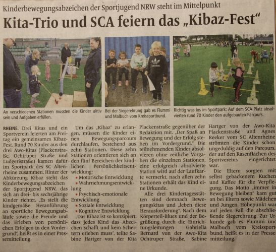 Am 22.09.2023 wird mit unserem Kooperationspartner, dem AWO Kindergarten das KIBAZ - Kinderbewegungsabzeichen - durchgeführt.
